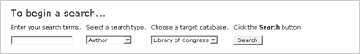 for search type (e.g. Author, Title, Subject, Publisher, Call Number) and highlighting your desired choice.