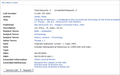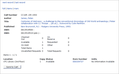 From the Full Record screen you can access the Items, Holdings, and MARC